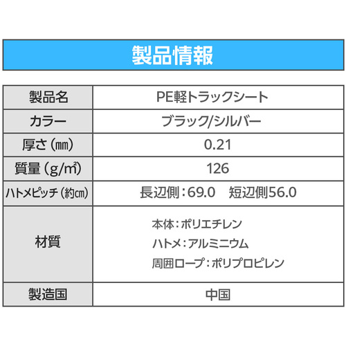 萩原 PE軽トラックシート 1号 シルバー 1.8m×2.1m PEKT1821-SV
