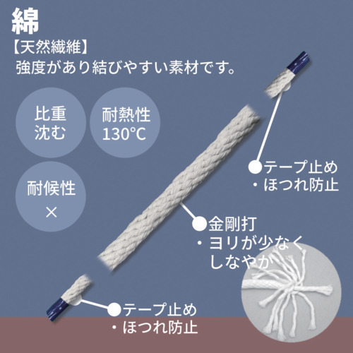 ●天然繊維なので、熱や摩擦に強いロープです。
