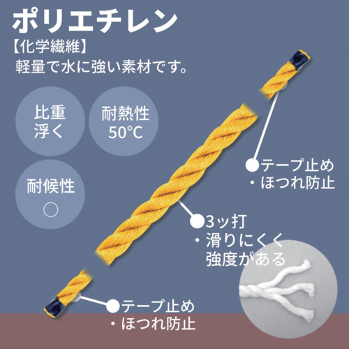 ●軽量で水に強く、強力でショックにも強いロープです。