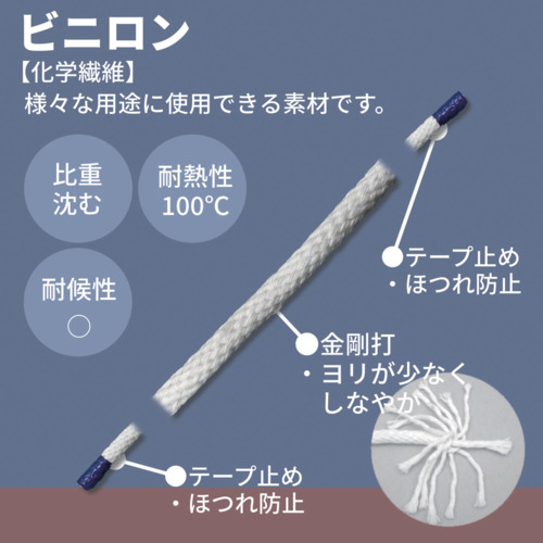 ●手触りがよく扱い易い、耐候性、耐久性に優れた強度の強いロープです。