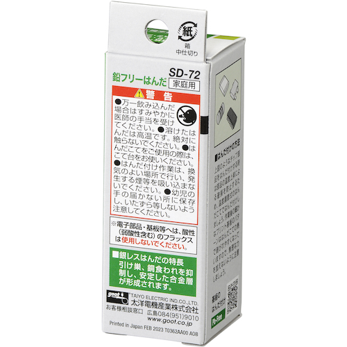 グット 鉛フリーはんだ 精密プリント基板用 φ0.8 SD-72