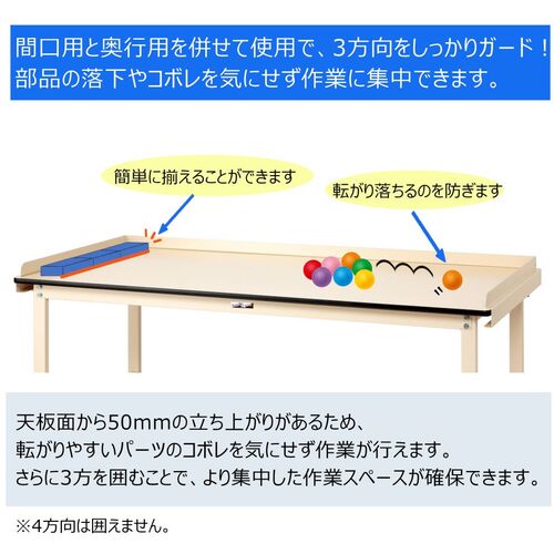 ●別売りの奥行用コボレ止めと合わせてお使いいただくことで、天板の3方を囲えます。