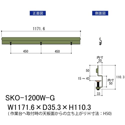 9. ヤマテック ワークテーブル用オプション 作業台用コボレ止め 間口用 W1200mm用 ヤマテックグリーン SKO-1200W-G