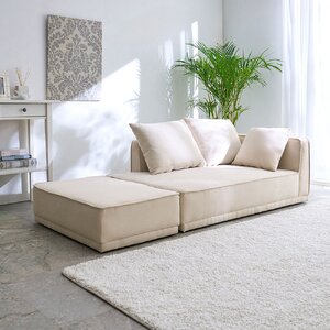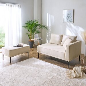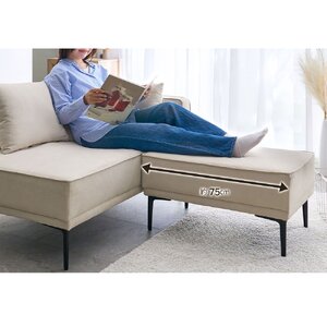 9. オットマン付スタイリッシュカウチソファ アイボリーベージュ