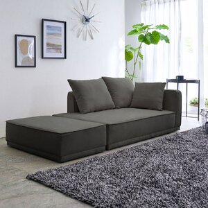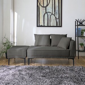 9. オットマン付スタイリッシュカウチソファ チャコールグレー