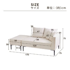 ■サイズ(幅×奥行×高さ/約cm)/2人掛:120×75×75、オットマン:50×75×39、座面の高さ(共通):39
