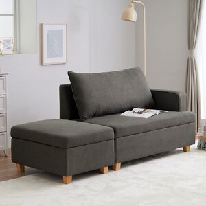 収納付オットマンカウチソファ チャコールグレー