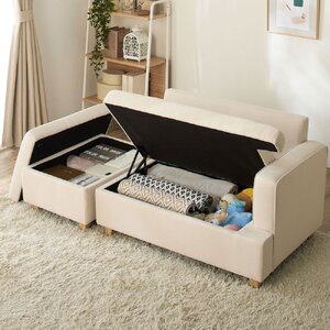 ■収納部内寸(幅×奥行×高さ/約cm)/ソファ座面下:81×52×17、オットマン下:40.5×62×17