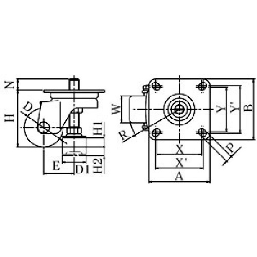 ユーエイ プレート式 自在 アジャスター付キャスター 強化ナイロン 車輪径50mm  AFタイプ AF型 取付寸法80×80(75×75) AF-50