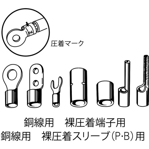 ●銅線用裸圧着端子用、銅線用裸圧着スリーブ(P・B) 使用範囲(平方ミリメートル):1.25、2、5.5