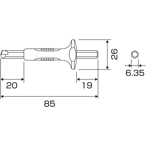 ●六角ネジとりビット六角軸(mm):対辺6.35