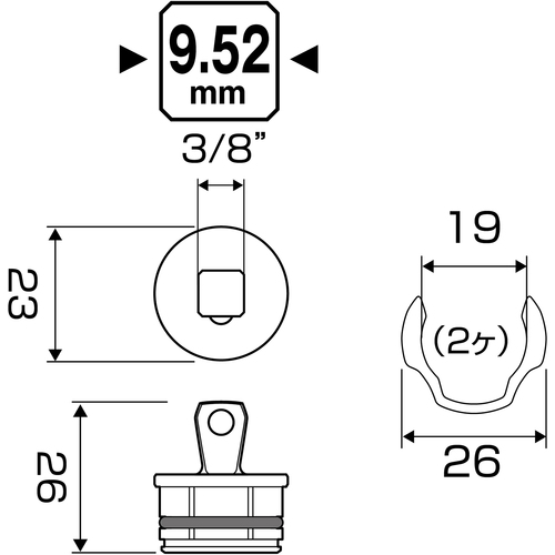 アネックス オフセットアダプター専用アダプター 差込角9.52(3/8″) AOA-19AD3