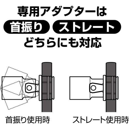 ●専用アダプターに市販のソケットを装着して狭い所でのボルト・ナット回しに。