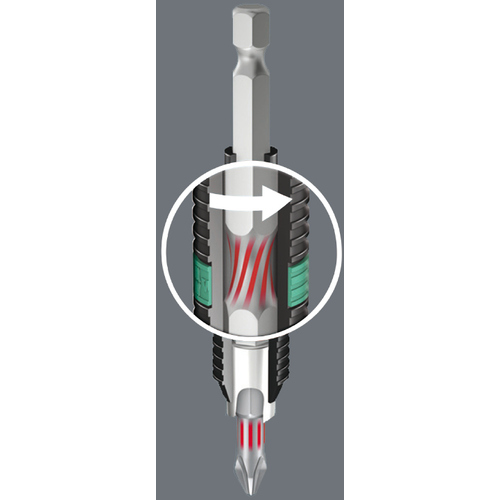●専用のビットホルダ(053923)と併用することで、3つのトーション(トライトーション)が作用し、ビットの長寿命化を実現しています。
