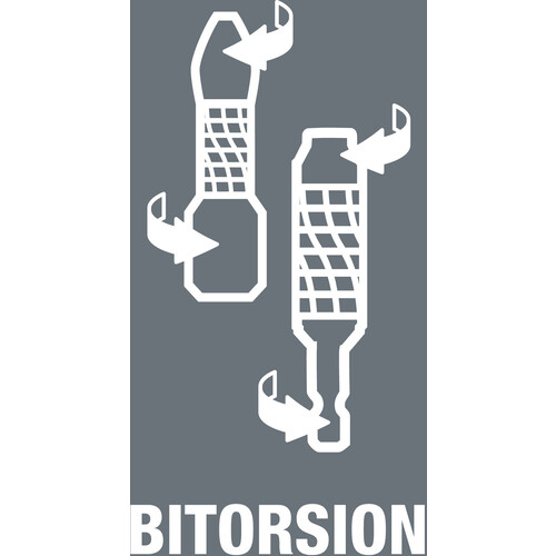 ●独自開発したバイトーション、熱処理した軸の部分でねじれによる衝撃を吸収し、耐久性を向上します。
