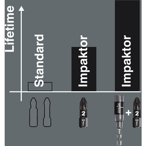 ●別売のインパクタービットホルダ(057675、057676)と一緒に使用することでさらに、寿命が伸び、コスト削減に貢献します。(トライトーション効果)