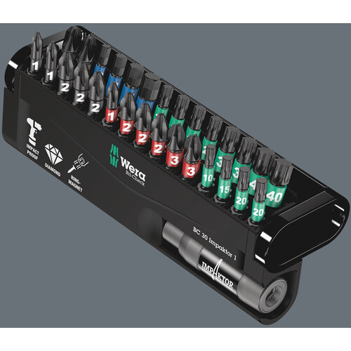 ●[[+]]1×2・2×3、3×2、PZ1×2、PZ2×3、PZ3×2、トルクスT10・T15・T20×2・T25×3・T30×2・T40×2「インパクター」ビットホルダ、六角3.0mm、4.0mm、5.0mm、6.0mm