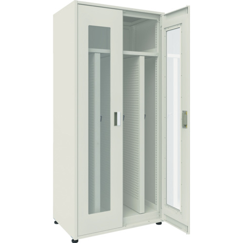 TRUSCO M3型ユニット中量棚 両開き扉・背・側パネル付 H2100XW900 パンチングパネル3枚付 単体 M3-U7364P3-SGR
