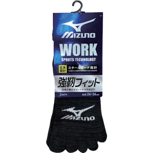 ミズノ 靴下 ミズノワーク 強靱 黒カラー12丈 5本指 サポート 吸汗速乾 2P24-26 アソート 689-711-25-00