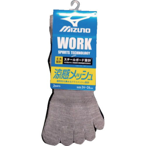 ミズノ 靴下 ミズノワーク 涼感 無地 引揃12丈 メッシュ 5本指 サポート 吸汗速乾 2P24-26 アソート 689-712-25-00