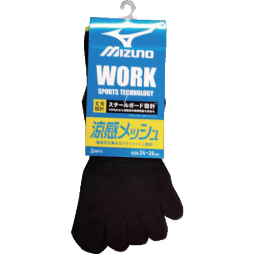 ミズノ 靴下 ミズノワーク 涼感 黒カラー 12丈 メッシュ 5本指 サポート 吸汗速乾 2P24-26 アソート 689-713-25-00