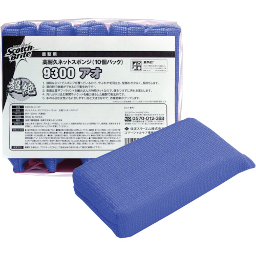 3M スコッチ・ブライト 高耐久ネットスポンジ 9300薄手 青 (10個入) 9300 BLU 10P USU