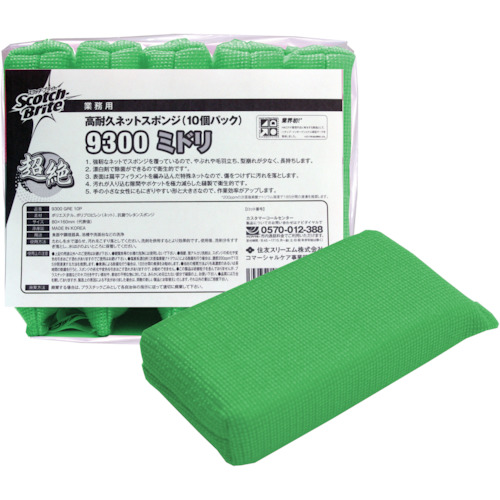 3M スコッチ・ブライト 高耐久ネットスポンジ 9300薄手 緑 (10個入) 9300 GRE 10P USU