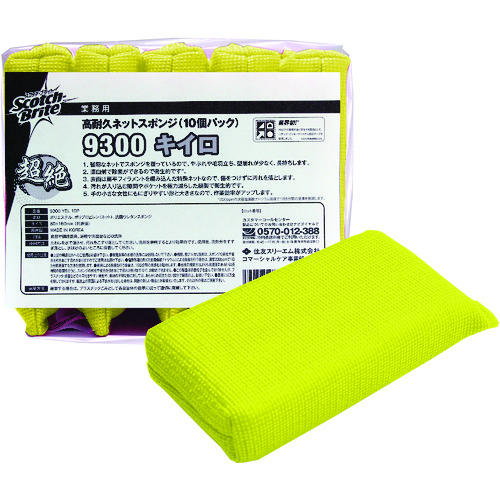 3M スコッチ・ブライト 高耐久ネットスポンジNO.9300 黄色 10個入り 9300 YEL 10P