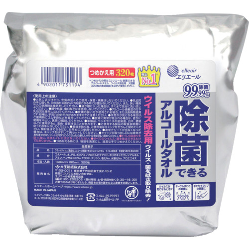 エリエール 除菌できるアルコールタオル ウイルス除去用 大容量 つめかえ用 320枚 21001819