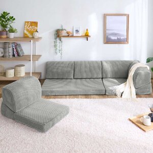 フロア コーナーソファ 3点セット コーデュロイグレー 1人掛け 2人掛け コーナー ソファセット フロアソファ ローソファ
