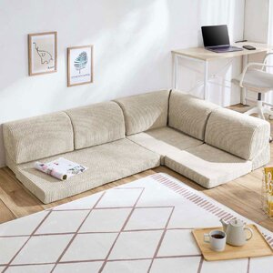 フロア コーナーソファ 3点セット コーデュロイベージュ 1人掛け 2人掛け コーナー ソファセット フロアソファ ローソファ
