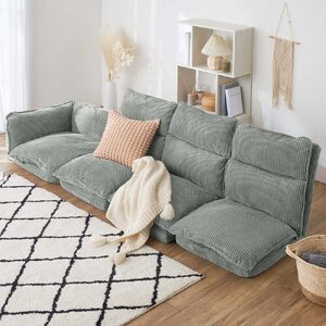 リクライニングフロアコーナーソファ コーデュロイグレー CDGR