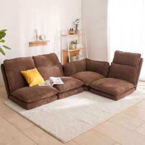 リクライニングフロアコーナーソファ コーデュロイブラウン CDBR