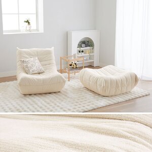 ゆったり包み込まれるローソファ アイボリー 1人掛+オットマンセット
