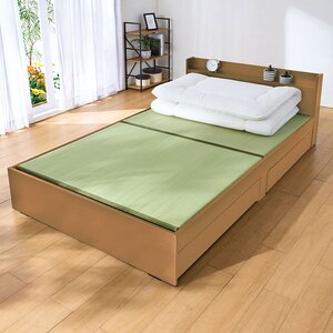 宮・引き出し付樹脂張り畳ベッドII ライトブラウン ロータイプ シングル 組立品