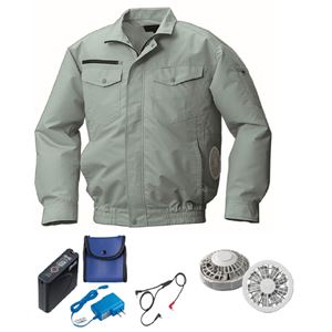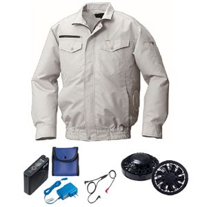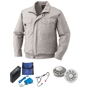 KU92030 空調服 R 綿・ポリ混紡 横ファン FAN2200B・RD9261・LISUPER1セット シルバー L