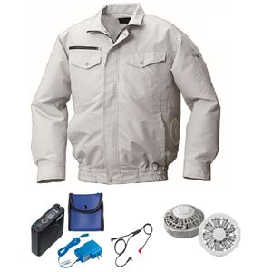KU92030 空調服 R 綿・ポリ混紡 横ファン FAN2200G・RD9261・LISUPER1セット シルバー L