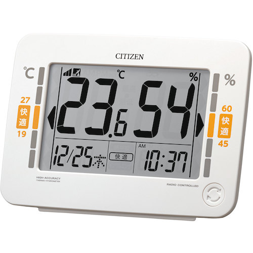 シチズン 高精度 温湿度計 電波時計機能付き 白 132*186*53 8RZ232-003