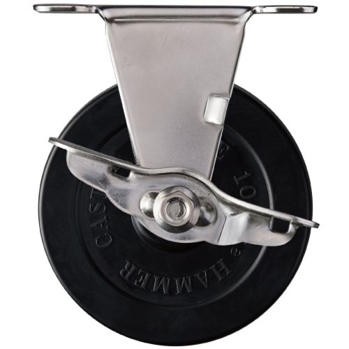 ハンマー ステンレス製プレート式キャスター 固定(ストッパー付) 車輪径100mm ゴム車輪 Eシリーズ 315ER-R100