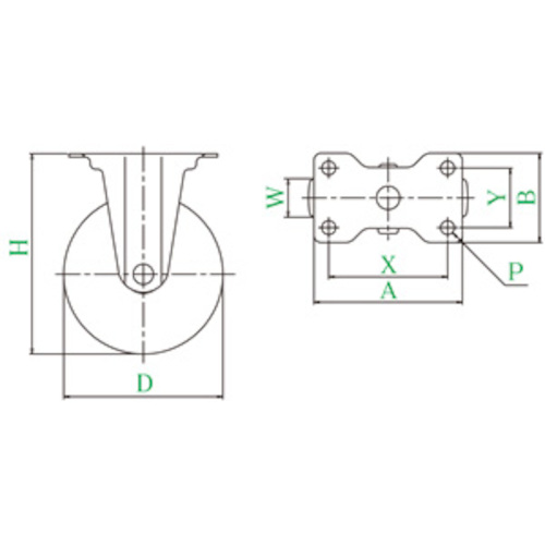 ハンマー 静音固定式ゴム車輪(ナイロンホイール・ラジアルボールベアリング)125mm 420BER-FR125