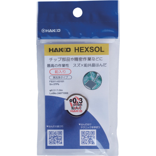 白光 はんだ ヘクスゾール 鉛フリー Sn-3.0Ag-0.5Cu Φ0.3mm 1m FS521-03101