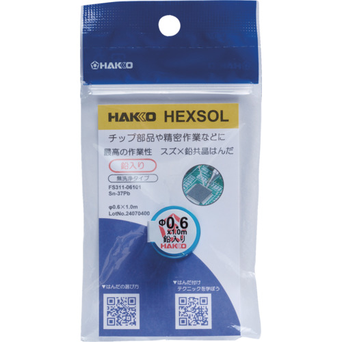 白光 はんだ ヘクスゾール 鉛入り 共晶 Sn-37Pb Φ0.6mm 1m FS311-06101