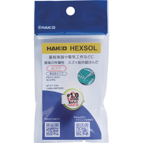 白光 はんだ ヘクスゾール 鉛入り 共晶 Sn-37Pb Φ1mm 1m FS311-10101