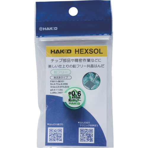 白光 はんだ ヘクスゾール 鉛フリー 共晶 Sn-0.7Cu-0.05Ni Φ0.6mm 1m FS511-06101