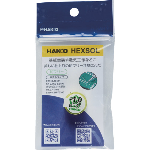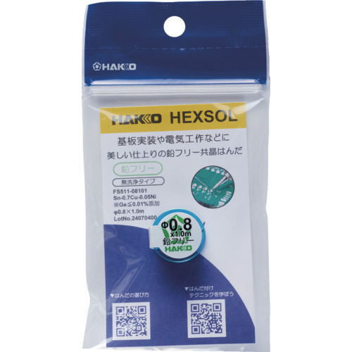 白光 はんだ ヘクスゾール 鉛フリー 共晶 Sn-0.7Cu-0.05Ni Φ0.8mm 1m FS511-08101
