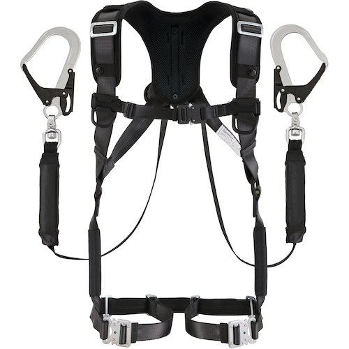 TSUYORON レヴォハーネス ダブルランヤード付き ロック機構付き巻取式ワン・ハンドリトラ+伸縮式ノビロン(BK) 黒・赤 Lサイズ TH508-OHNV93SV-OT-BKR-L-2R23BX
