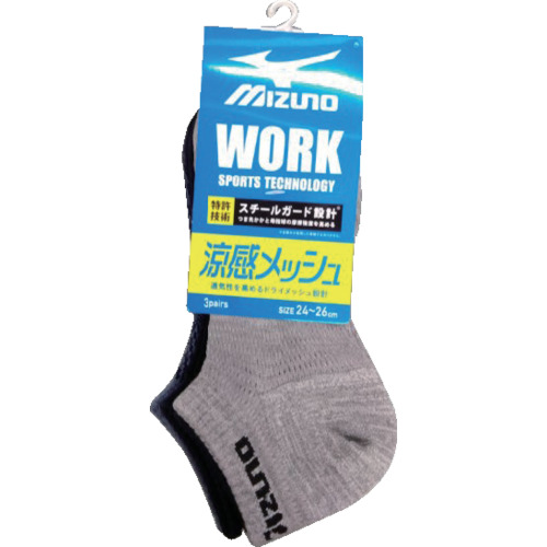 ミズノ 靴下 ミズノワーク 涼感 無地 引揃8丈 メッシュ サポート 吸汗速乾 3P26-28 アソート 681-454-27-00