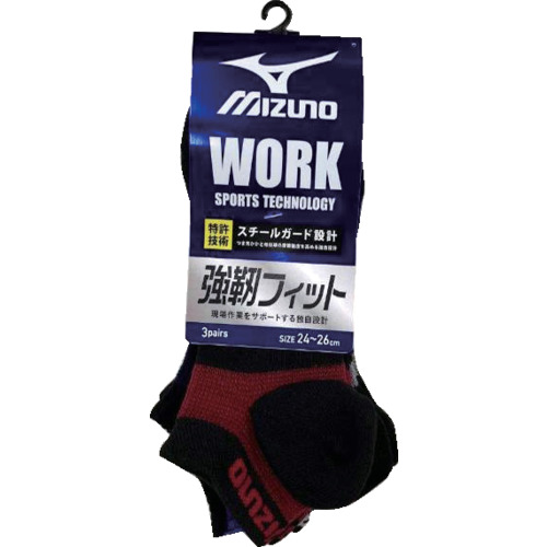 ミズノ 靴下 ミズノワーク 強靱 引揃8丈 サポート 吸汗速乾 3P24-26 アソート 681-450-25-00